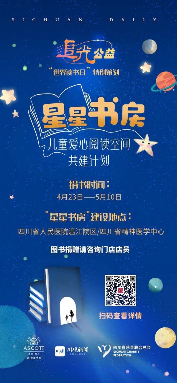 4月23日,川观新闻·追光公益推出的“星星书房-儿童爱心阅读空间共建计划”,可以线下捐书啦!