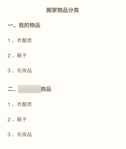 根据物品的使用频率率分为常用和不常用两个分类,遵循“不常用的物品先打包,使用常用物品后打包”的原则。打包好的箱子用马克笔进行编号及备注物品类型,再列一份打包箱子清单,避免搬家过程中发生箱子遗落的情况。