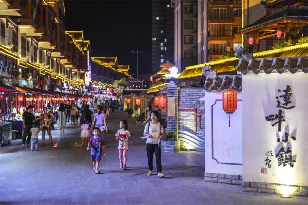 大化古江安置区达吽小镇夜市街景。