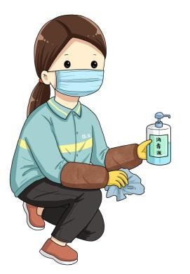 在清洁过程中,抹布要勤洗勤换,经常在日光下暴晒或放在阴凉通风处干燥。或定期使用有效氯500mg/L的消毒液浸泡消毒,作用30分钟后,用清水冲洗干净。