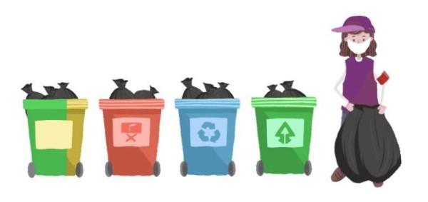 垃圾需分类收集,日产日清,建议使用套有塑料垃圾袋并有盖的垃圾桶。对清洁后的垃圾桶需定期进行消毒,可用有效氯500mg/L~1000mg/L的消毒液喷洒垃圾桶表面至湿润,消毒30分钟。