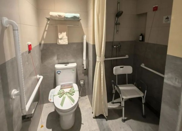 高差处理:卫生间门口与室内地面高差应≤15mm,若无法避免,应设置坡度不大于 1:20 的斜坡过渡。便器改造:坐便器高度宜为 450 - 500mm,两侧安装高度 850 - 900mm、长度≥500mm 的扶手。淋浴设施:淋浴椅座面高度宜为 400 - 450mm,座面宽度不小于 400mm,深度不小于 350mm,设有防滑垫和扶手;浴帘杆高度宜为 1800 - 2000mm;盥洗台下方留空高度≥650mm,深度≥300mm;采暖设备使卫生间室温保持在 22 - 24℃。