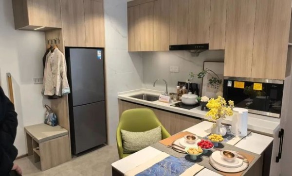 台面高度:厨房台面高度一般为身高 ÷2 + 50mm,台面边缘倒圆角半径不小于 15mm。收纳设计:常用物品收纳区域距地高度宜为 600 - 1400mm,拉篮承重不低于 15kg。电器选择:电器开关按键直径不小于 12mm,标识字号不小于 12 磅,操作界面简洁明了。