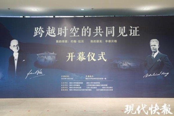 现代快报讯(记者 于露/文 顾闻/摄)10月24日,“跨越时空的共同见证 我的邻居:约翰·拉贝 我的朋友:辛德贝格”展览在南京大学仙林校区校史馆开幕。在展厅中,抽象的历史记忆转化为了具体、生动的情感体验,观众朋友们开启了跨越时空的“共同见证”。