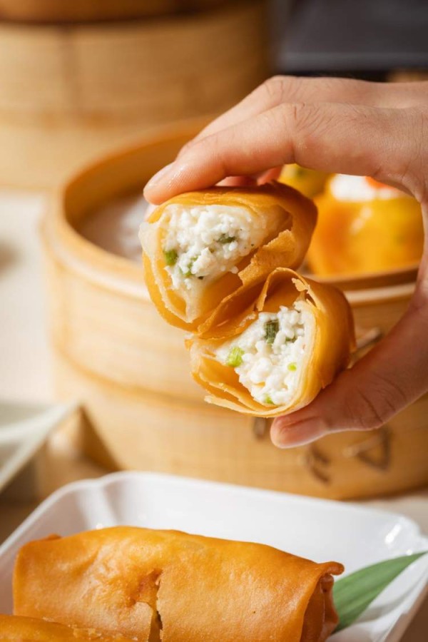 采用独有技艺炸得薄脆有型、结合镂空的包装手法,数小时后仍能保持新鲜酥脆的芙蓉蛋白春卷,口感丰富外脆里嫩。