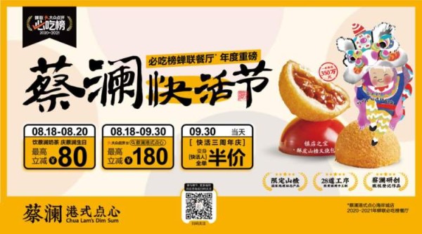 8月18日,恰逢蔡澜先生80岁大寿,为了将其所倡导的快乐文化传递给当代年轻消费者,蔡澜港式点心正式发起年度品牌节——“蔡澜快活节”。