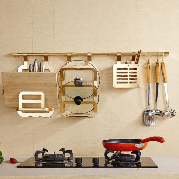 使用厨房挂钩,墙面空间得到充分利用 #生活技巧# #居家技巧# #厨房小工具#