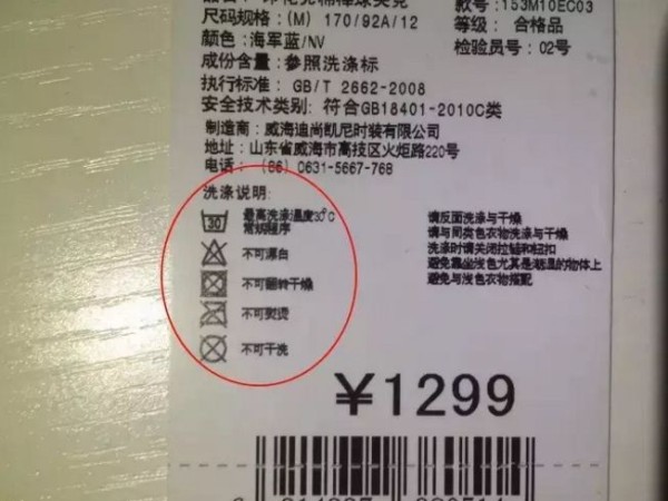 了解衣服的洗涤标签甚至比了解衣服的面料要重要的多!比如一般买的新衣服,标签上除了标明材质,还会特地标注上洗涤说明。