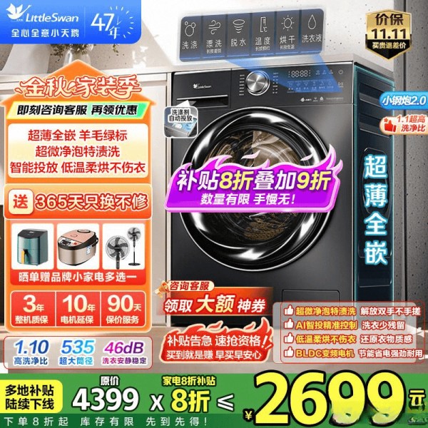 小天鹅是中国洗衣机行业的先行者和领导品牌,专注于洗涤领域几十年,凭借其在水魔方、超微净泡等技术上的不断突破,成为了国内滚筒洗衣机市场的“常青树”。小天鹅的产品以高性价比、皮实耐用和优秀的洗净比著称。