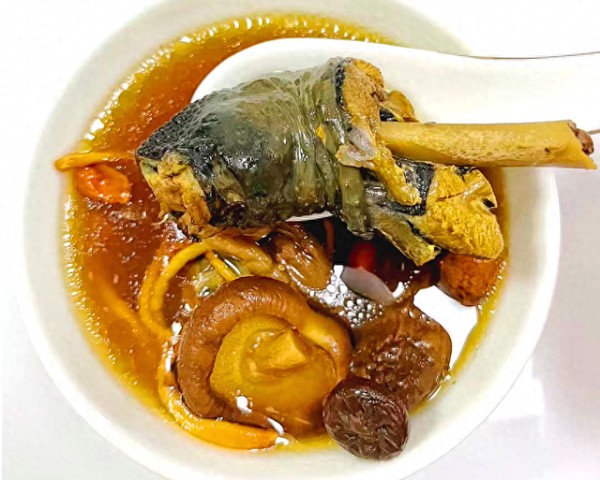 6、出锅盛碗即可上桌享用,这样一道家常版的:羊肚菌杂菇乌鸡汤就做好啦。