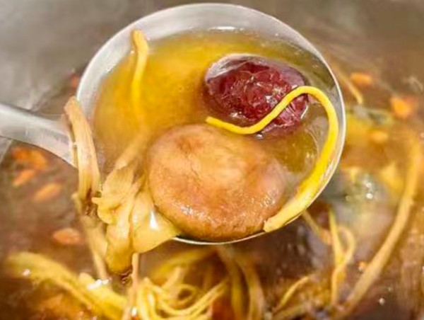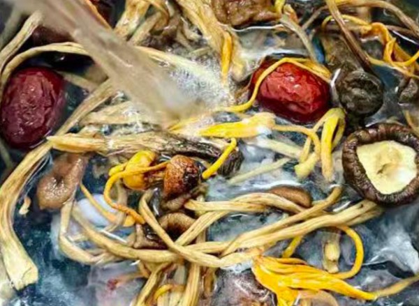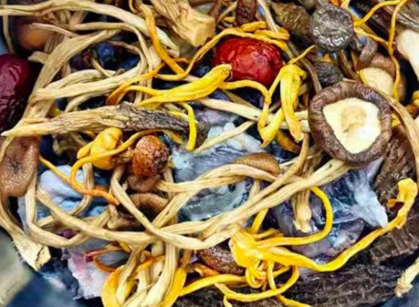 食材:虫草花、羊肚菌、姬松茸菌、香菇、茶树菇、鹿茸菌、乌鸡、枸杞、红枣。