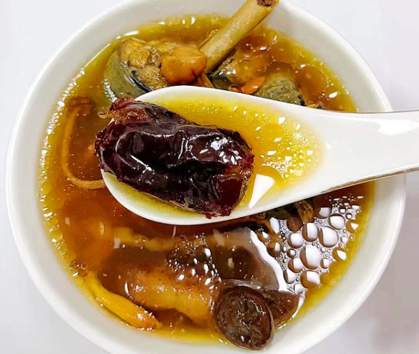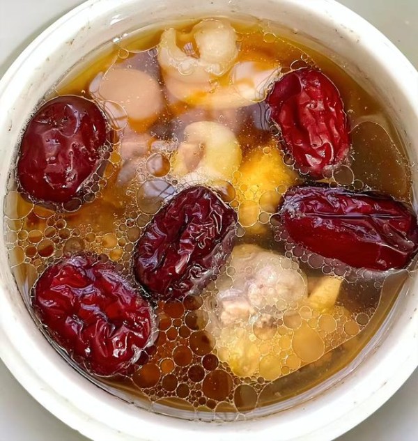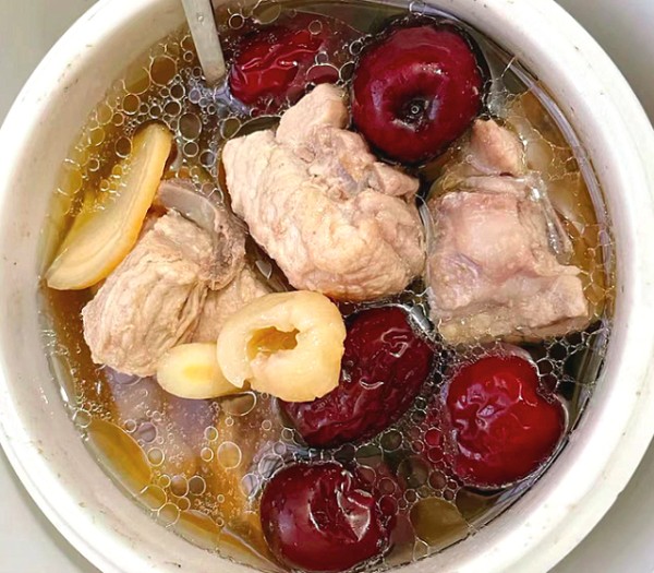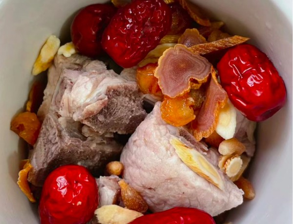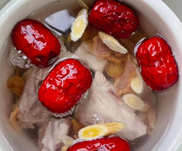 食材:猪骨、红枣、枸杞、红参、黄民、桂圆、麦冬。
