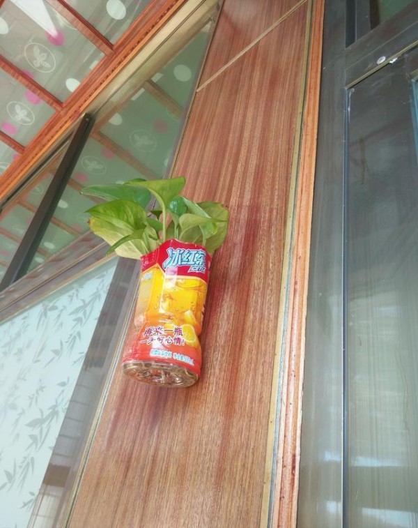 2. 大家都知道绿萝是一种水生植物,所以养起来也非常简单方便,如今在生活中到处都可以见到用绿萝来当装饰品了 厨房、书店、餐厅、教室、宿舍等,今天教大家一个更好的装饰法,那就是在走廊里将小盆绿萝吊起来,绿萝长大后会 像下延伸,而走廊里如果将绿萝吊挂起来,看到长大后垂下来的样子更是完美的装饰品,真实而美观,还净化了空气, 1用废旧塑料瓶就可以了,容易悬挂,轻巧。给你的视觉效果也不错。允许的话可以吊慢整排走廊。