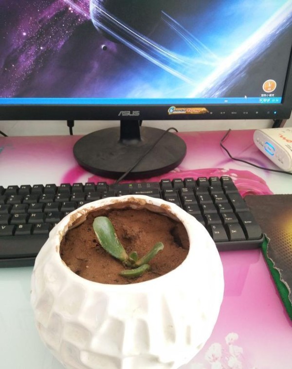 3. 养过小兔子的都知道,喂兔子的“饭碗”很好看,其实它还有很多用处哦,在下边钻一个小孔就立马摇身一变成了小花 盆,这样大的小花盆放在电脑桌上最合适不过了,可以在里面养一小棵万年青,或者栽培一个小仙人球,既可以吸收电 脑的辐射,也可以当装饰品,实用又美观。