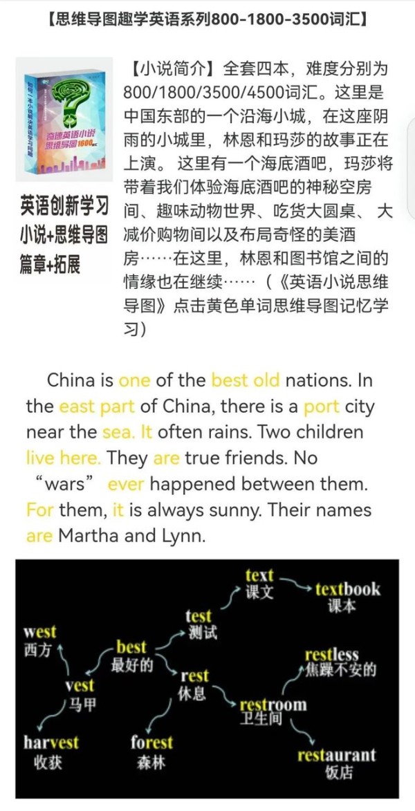 应用:奇速英语团队一套获得国家知识产权的词汇课程,这种方法真正做到了词不离句,句不离篇,提高了记忆效果,培养了发散思维,创新能力和领导才能!通过双师课堂、学习机、冬夏令营,数百万孩子已经告别死记硬背和软件刷单词,通过思维导图故事记单词快速提升了英语成绩和综合能力。