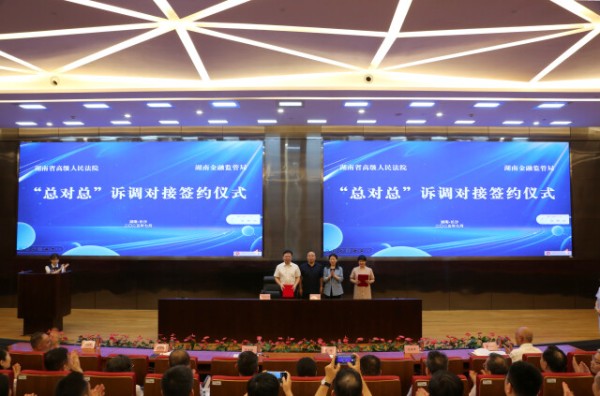 调解中心试运行一段时间后,湖南省高级人民法院与湖南金融监管局进行“总对总”诉调对接签约,湖南金融纠纷化解联动机制正式启动运行。