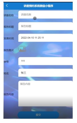 用户登录本系统后,可以发表讲座报告信息。如下图所示: