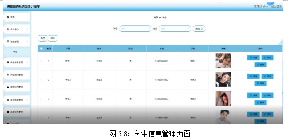 其中,学生信息管理界面为5.8所示: