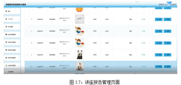 其中,讲座报告管理界面为5.7所示: