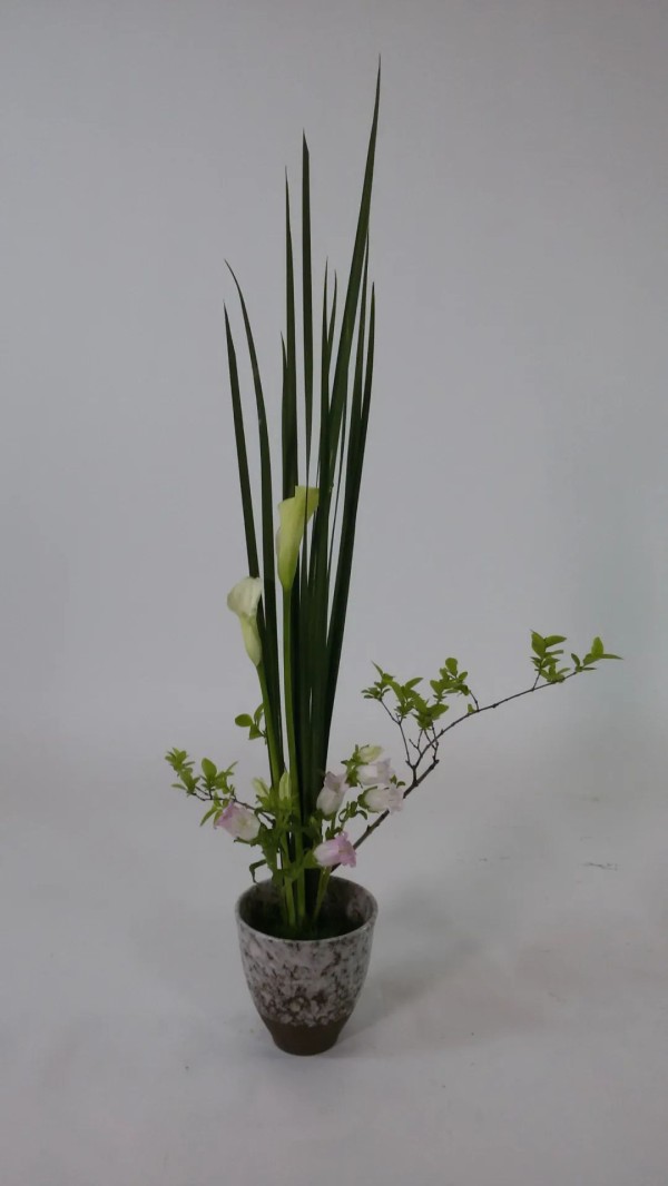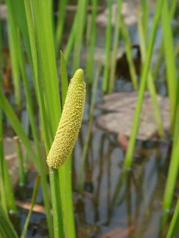 一丛菖蒲叶上散下聚,昂扬挺立,是中国传统插花作品中常用的叶材。