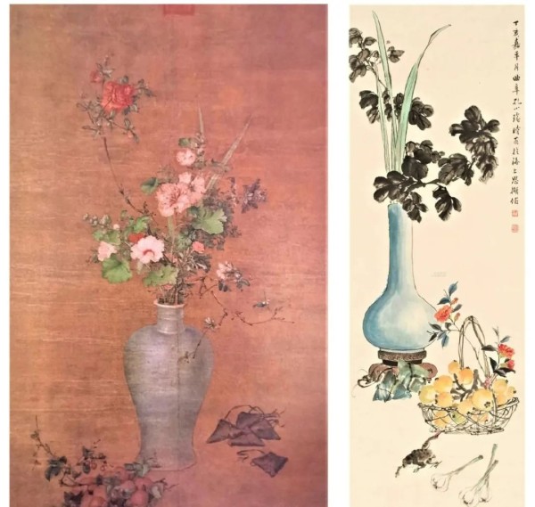 清/郎世宁《端阳图》(左),民国/孔小瑜《五瑞图》(右)
