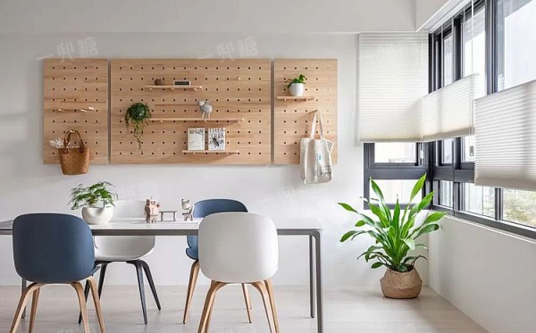 通常选择在墙面装设洞洞板都是为了增加空间收纳,但是如果因为个性化的美观度选择特殊形状的洞洞板,那么在收纳上就可能会大打折扣,颜值和性能不能完全兼得。