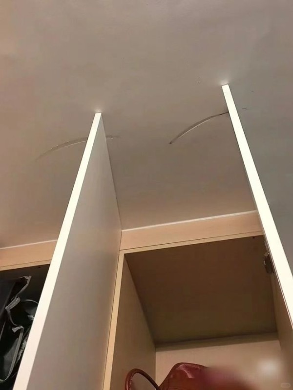 可一柜到顶在日常的使用中肯定会出现变形,一旦柜门变形之后,那开合就是个问题,同时还有可能划伤天花板,想想就觉得麻烦。