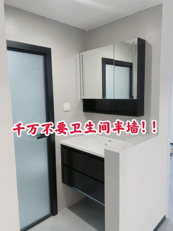 半墙洗手池设计会导致日常洗漱时水渍飞溅,同时洗漱台面乱糟糟,也能让人一览无余,看着就让人心烦意乱,太建议大家选择。