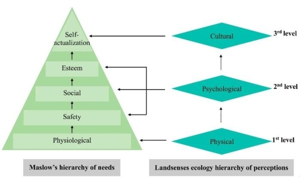 图2.景感生态学感知层次与马斯洛需求层次