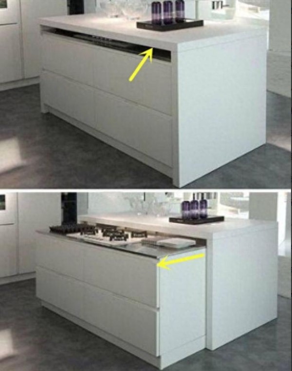 准确的讲,是一个可移动的地柜。日常可以隐藏于地柜当中,平时可以拉出来当成一个台面。这可以很好增加备菜空间,也是收纳增加的一种方式。