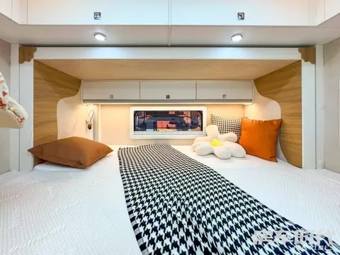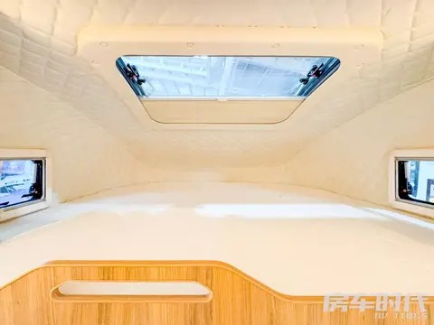 驾驶室上方是额头床,尺寸可观,上方为天窗,两侧还配备有通风窗。