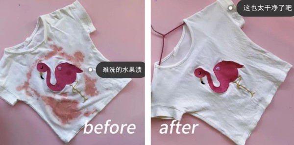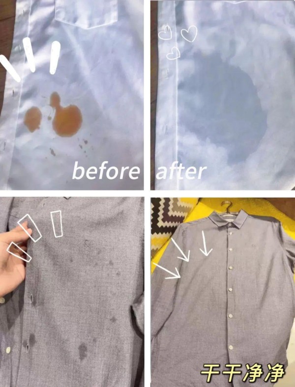 涂完之后,衣服上面的污垢就消失不见了,衣服瞬间焕然一新。