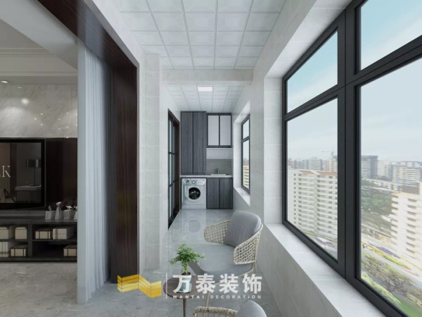 该户型阳台空间充足,所以分隔做了生活和休闲阳台。既满足晾晒衣物,还可在此小憩~
