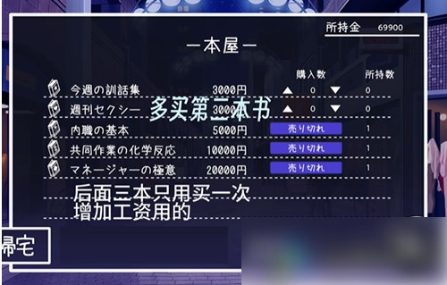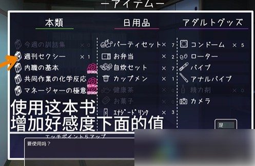 道具使用:使用书本可以增加第二条数值(好感度下面那条)
