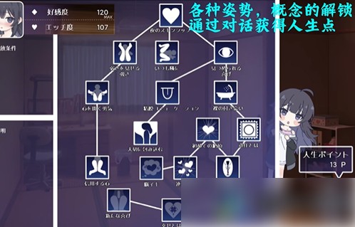 解锁:解锁不同的姿势,需要在与其的对话当中获得人生点解锁