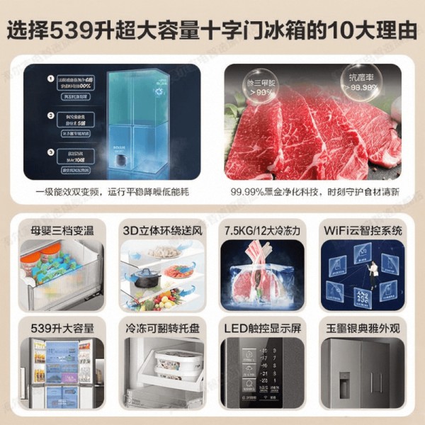 选购建议:如果你家人口多,或者喜欢囤货,这款冰箱绝对是你的不二之选。它的大容量和精细分区能让你更好地管理食材,而一级能效和双变频设计又能帮你省下不少电费。而且,它还有清新净味功能,能有效去除异味,保持食材新鲜。所以,如果你在找一款实用又省心的冰箱,这款海尔冰箱绝对值得你考虑!