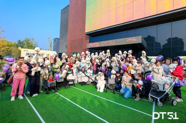 北京DT51西侧广场化身为充满活力的萌宠乐园,近百只比熊犬在主人的陪伴下齐聚现场开启了一场运动嘉年华。活动现场精心规划了多个功能区域:宠物竞技区设有适合比熊体型的趣味运动项目,让萌宠们尽情展现运动活力;专属摄影区配备专业团队,为每个家庭记录下温馨互动瞬间;特色宠物市集则汇集了各类精选萌宠用品,满足养宠家庭的多样化需求。