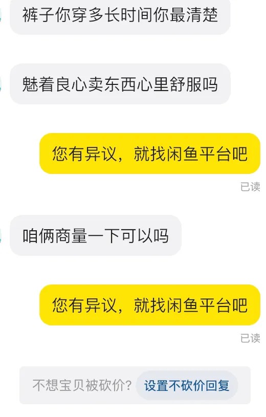 [石化]其次,他的目的就很明显了,想6.5元把一条不能穿的裤子,换成新裤子