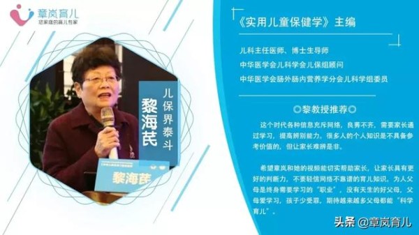 《章岚育儿讲堂》得到了儿保界泰斗黎海芪老师的肯定和认可: