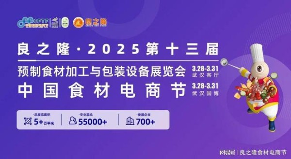 汇聚食材加工全产业链设备,引领智能化、精细化新方向,3月28-31日,良之隆・2025 第十三届预制食材加工与包装设备展览会将在武汉客厅盛大举行。