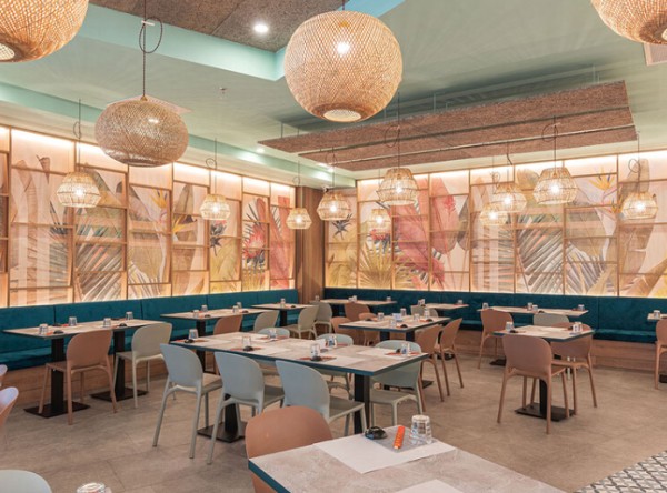 不仅仅是零售空间受益于 Tecnografica 的手绘植物设计所营造的夏日或热带氛围。今年早些时候,Gino D'Acampo 餐厅集团在英国选择了 Polly 的 Ocra 颜色变种,因为它的优雅和精致,用来装饰多家餐厅的墙壁。客户选择了壁纸的防水 H2O 表面处理,以确保长期使用下,这些热闹的餐厅表面能够拥有耐久性。