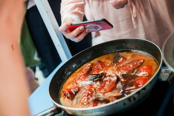 下午4点30分起,连续两场直播持续到华灯初上。通过直播、微信推送等方式,主办方向市民发放非遗产品消费优惠券。来自市区的曹女士一拿到消费券就以8折优惠价把非遗美食“撩”了个遍,“机会难得,一次接触到这么多好吃好玩的,感觉非遗就在身边。”家住附近的顾小姐笑说,“原来经常吃这些鱼圆、点心,听了背后的非遗故事,感觉这些吃的都不一样了。”
