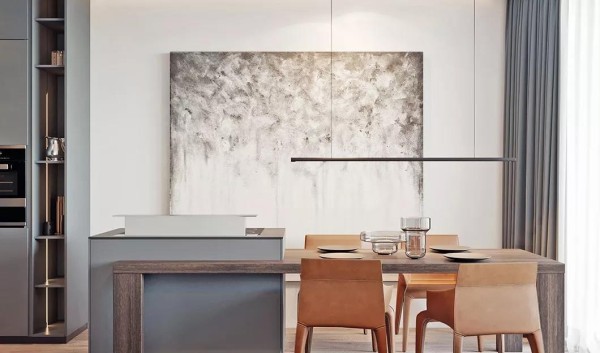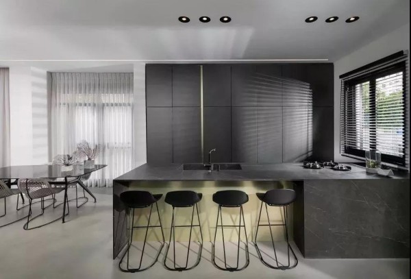 首先,你要做的就是让你的西厨区与储藏区全面打开。进而和邻近的餐厅、客厅连上。空间瞬间变大,变敞亮了。中厨区则将油烟味比较重的炒菜区单独隔开。而西厨部分,可以用更轻松的态度与空间做结合,以达到最美观的效果。
