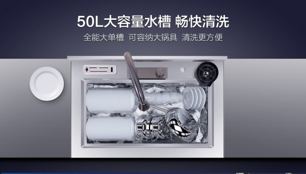 X6L将水槽、洗碗机、果蔬净化器、消毒柜、橱柜融为一体,足矣解决厨房所有清洗难题。