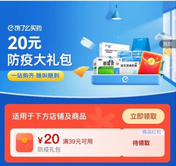12月4日起,饿了么买药宣布启动“多一点保障”行动,联合各地药店伙伴加大家庭常备药品及卫生物资的供应,提升买药配送优先级、扩大配送范围,并准备了首批100000个20元“专项礼包”发放,先到先得。