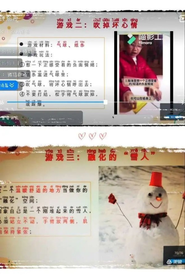 在直播课中,老师设计了有趣的互动小游戏,并在授课中不断接收学生反馈,及时改进与创新,加强了师生的互动性与心理课的现实感。