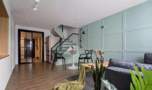 这是一套70平米的小复式,装修上选择了简洁大方的北欧风格,全屋以白色为基础色调,搭配原木色及薄荷绿,打造出一个干净自然,清爽舒适的居住空间。