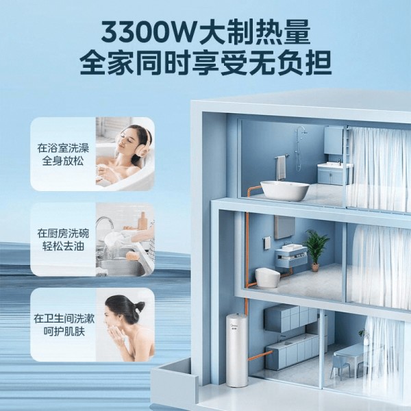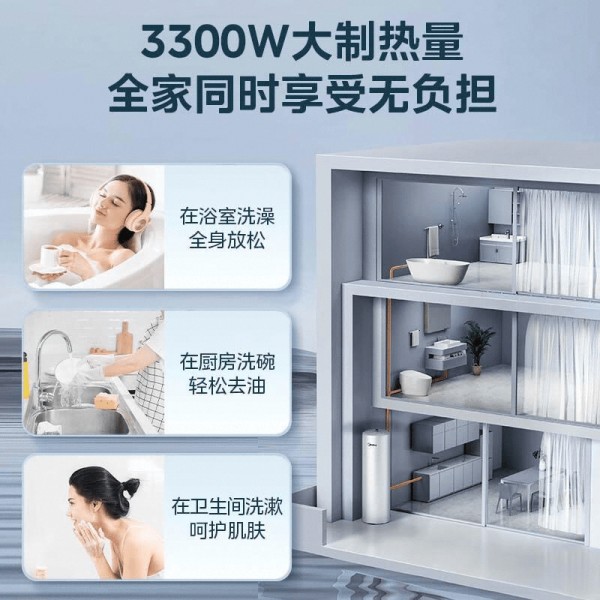 · 展开全文在追求高品质生活的时代,快速制热功能让用户体验到热水随时可用的便利,配备3500W高效制热元件和微通道换热技术,大幅提升加热速度,从容应对任何突发需求,无需等待,即可享受温暖。