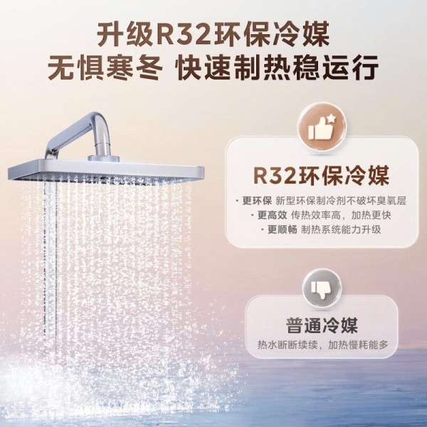 在环保方面,采用的R32冷媒不仅有效提升制热效率,还对臭氧层无害,真正做到低碳环保。同时,双感温包的设计让水温监控更为精准,全天候保持温度恒定,无论外界气候如何变化,均能保证舒适洗浴体验,让您享受四季如春的热水。