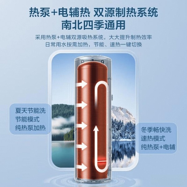 该热水器结合了热泵+电辅热双源增容技术,确保在任何气候条件下,快速获得澎湃热水。更值得一提的是,配有智能远程操控功能,能够随时随地调控加热状态。同时,微通道换热技术使得加热效率大幅提升,真正实现了高效、节能、环保的综合优势。
